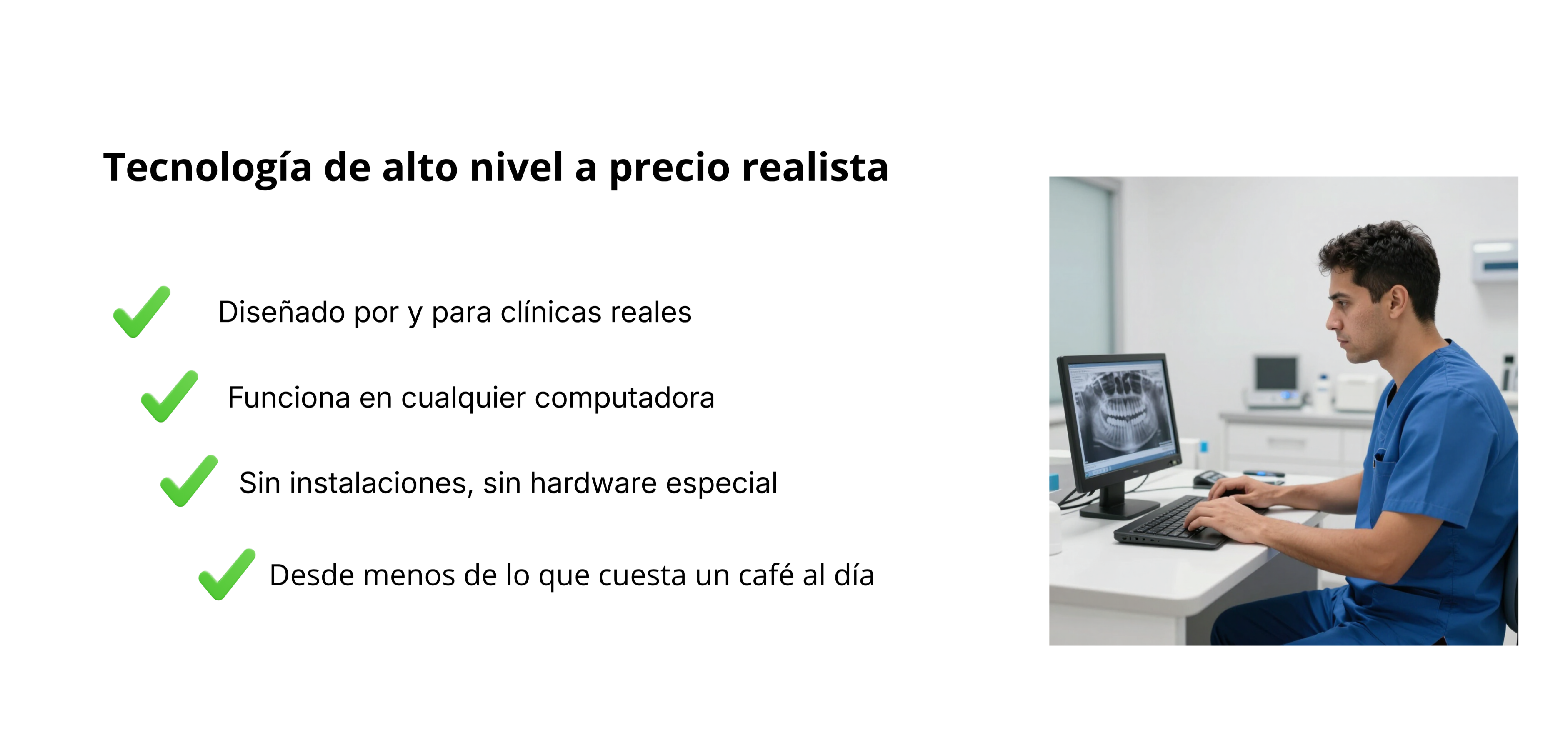 Sin software caro. Sin contratos. Hecho para odontólogos de Latinoamérica.